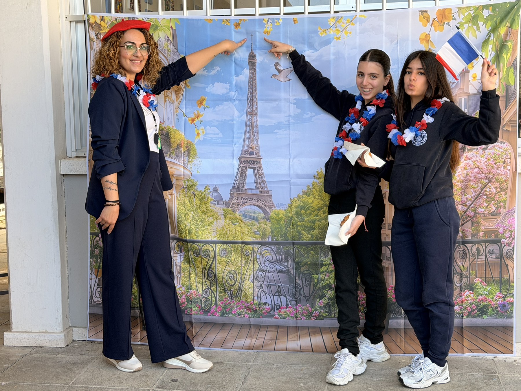 Οι μαθητές είχαν την ευκαιρία να φωτογραφηθούν με φόντο τον εμβληματικό Πύργο του Άιφελ, αλλά και ντυμένοι ως η μυστηριώδης Μόνα Λίζα, δίνοντας έναν ιδιαίτερο και διασκεδαστικό τόνο στη δράση, ταξιδεύοντας νοερά στο Παρίσι. Παράλληλα, γεύτηκαν πεντανόστιμα γαλλικά κρουασάν βουτύρου και σοκολάτας, ανακαλύπτοντας μέσα από τις γεύσεις ένα μέρος της γαλλικής κουλτούρας.