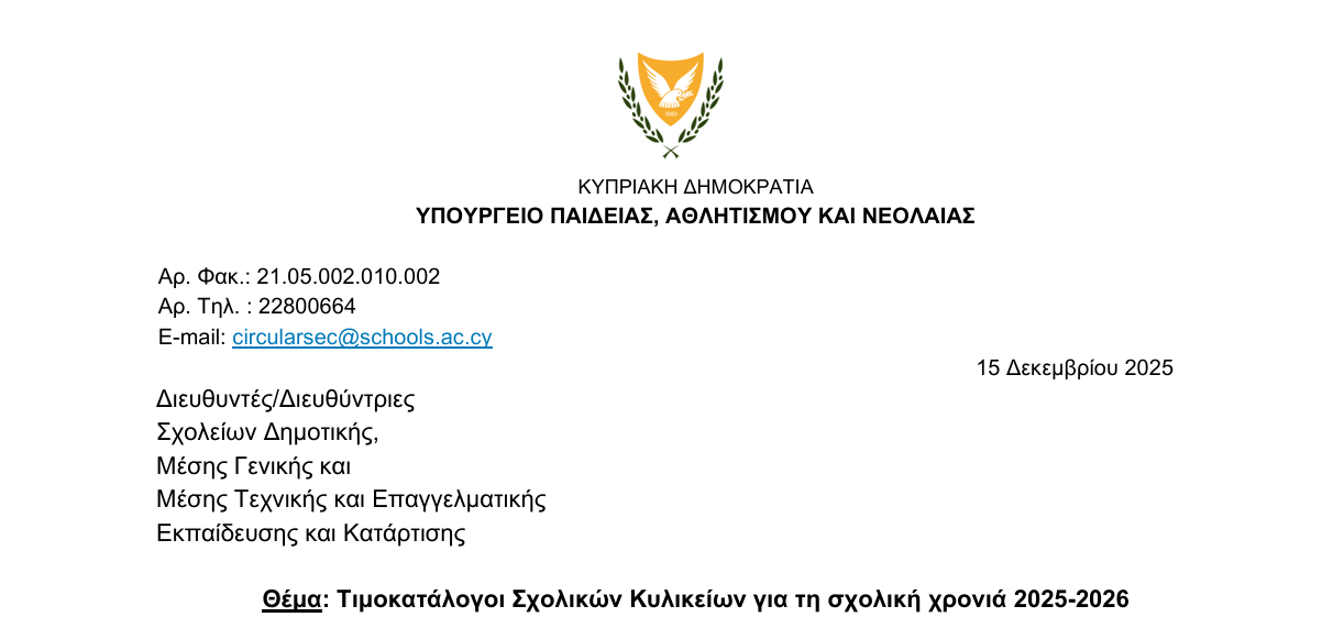 Απο το Υπουργείου Παιδείας, Αθλητισμού και Νεολαίας της Κύπρου