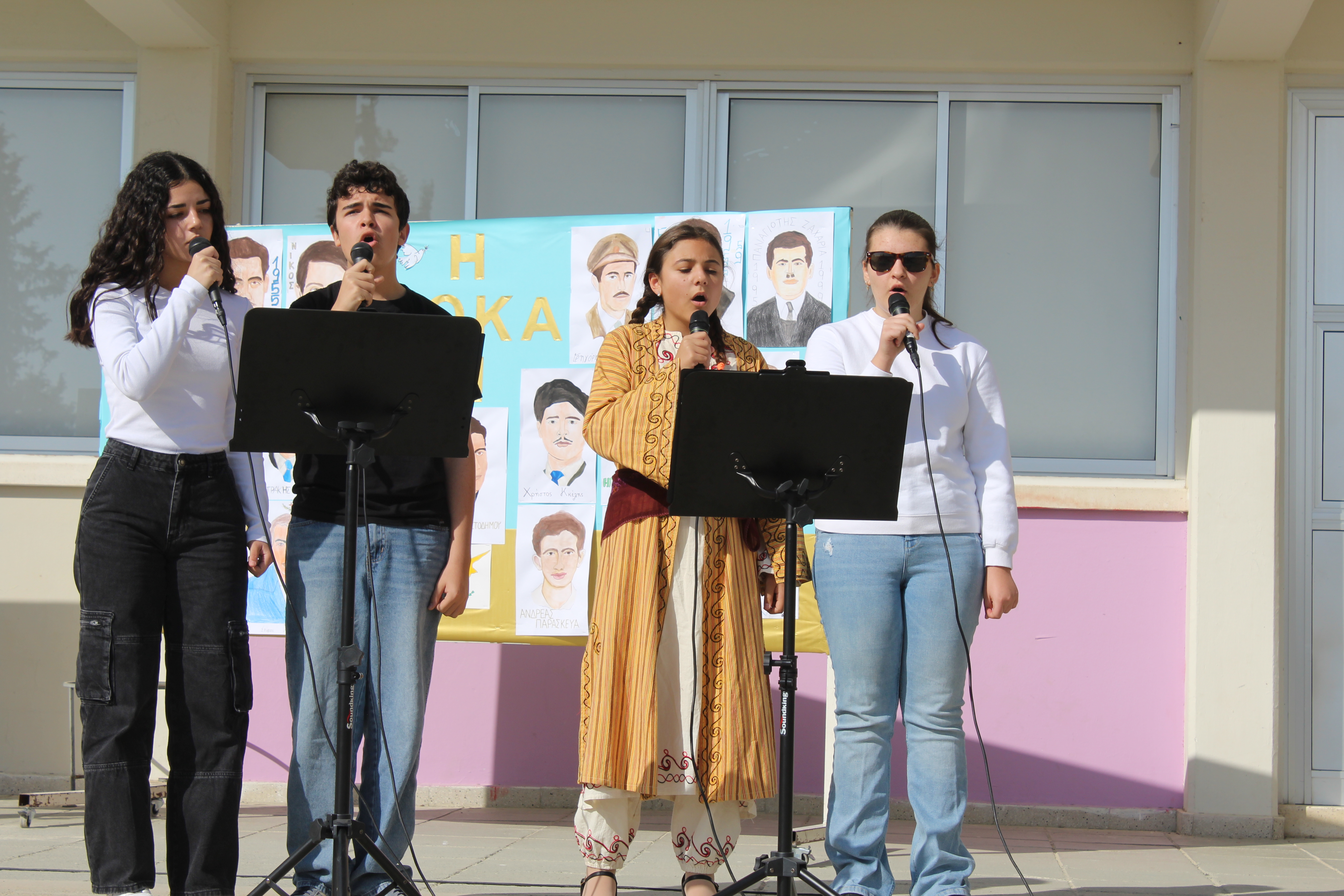 Θερμές ευχαριστίες αξίζουν σε όλους τους συμμετέχοντες, μικρούς και μεγάλους, που, συνέβαλαν στην αναζωπύρωση της μνήμης του αγώνα για λευτεριά, αλλά και στην οικονομική ενίσχυση του Παιδογκολογικού Τμήματος του Μακαρείου Νοσοκομείου και της Πρόνοιας του Σχολείου μας.