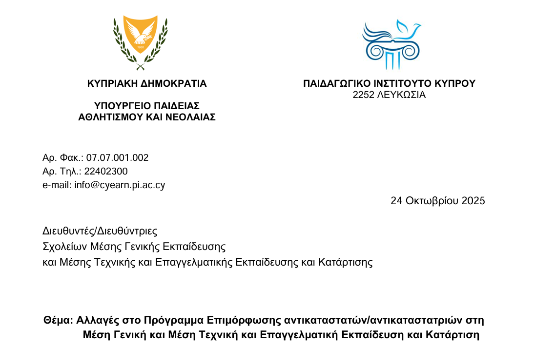 Απο το Υπουργείου Παιδείας, Αθλητισμού και Νεολαίας της Κύπρου