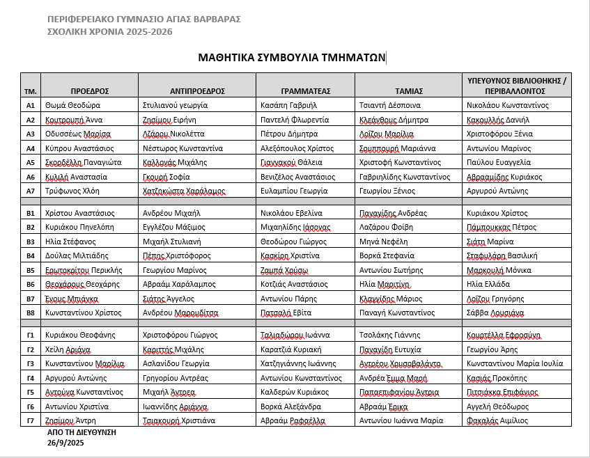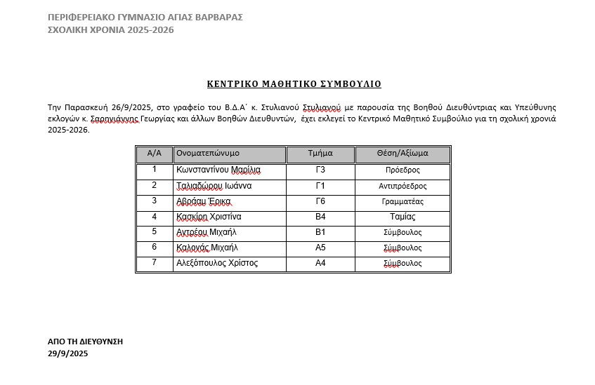 Eπιτροπή του Κεντρικού Μαθητικού Συμβούλιου για τη Σχολική Χρονιά 2025-2026