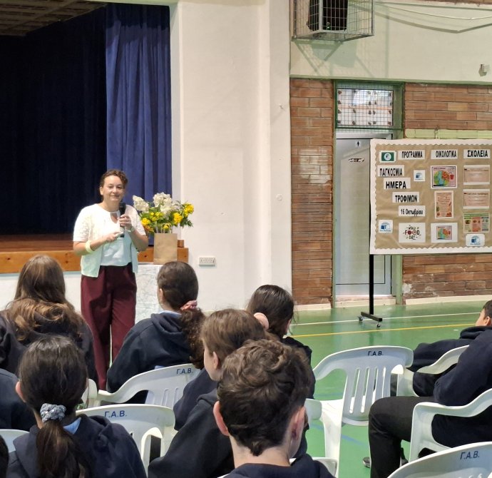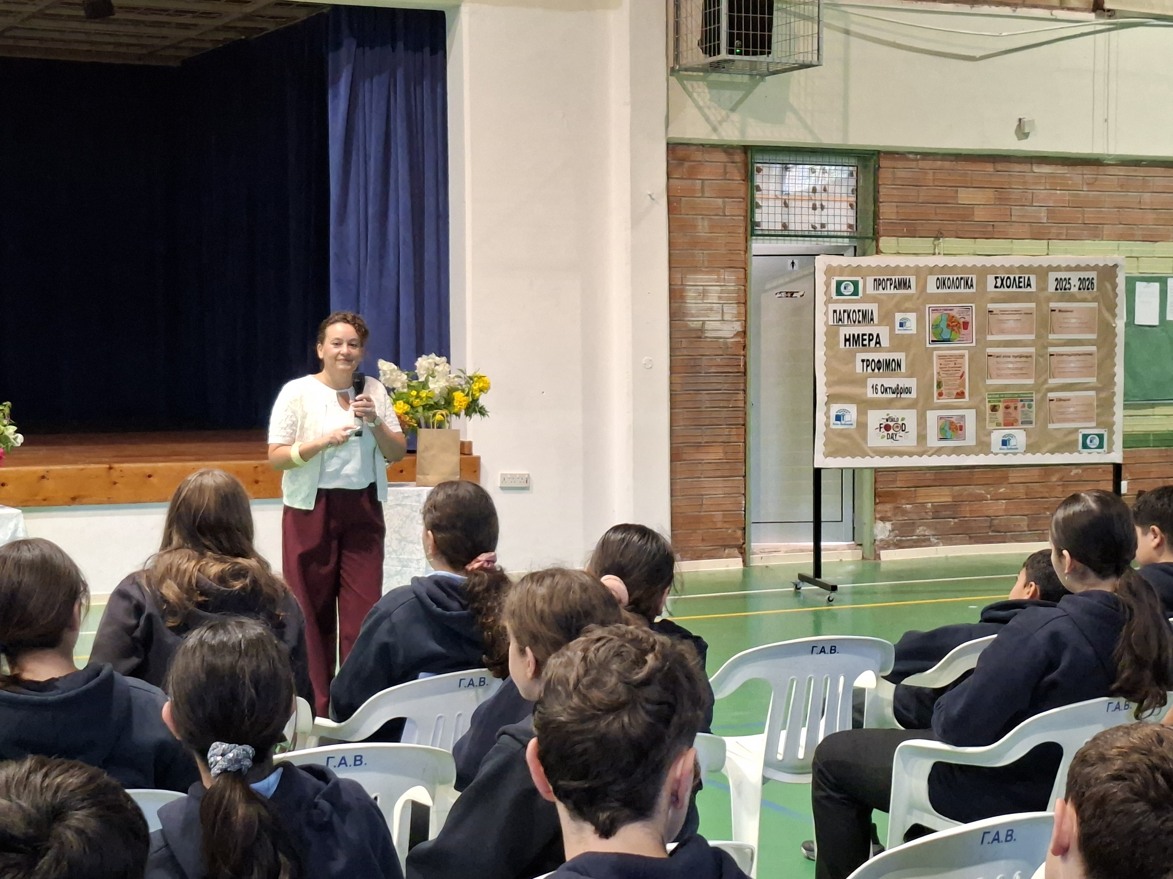 Την Πέμπτη, 16 Οκτωβρίου 2025, με αφορμή την Παγκόσμια Ημέρα Τροφίμων και στο πλαίσιο του προγράμματος «Οικολογικά Σχολεία», το σχολείο μας συμμετείχε στο πρόγραμμα «Ερευνητές και Ερευνήτριες στα Σχολεία» του έργου «MISSION POSSIBLE: Researchers on board for an inclusive and sustainable future» του Ιδρύματος Έρευνας και Καινοτομίας (ΙδΕΚ).