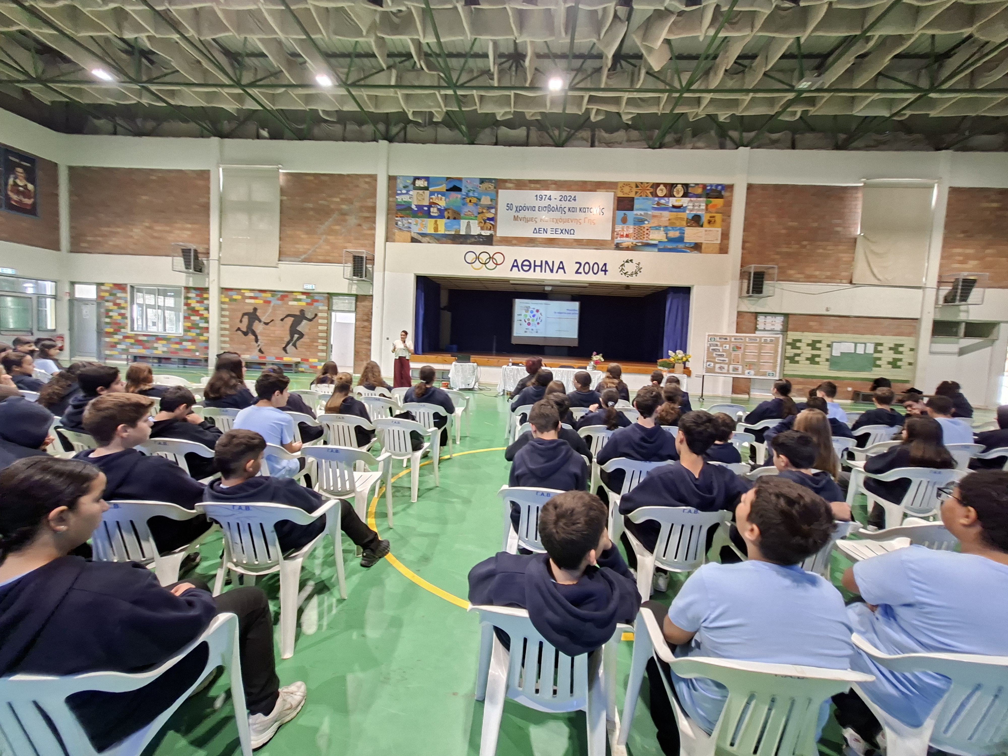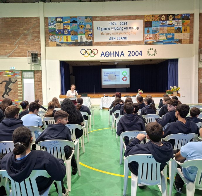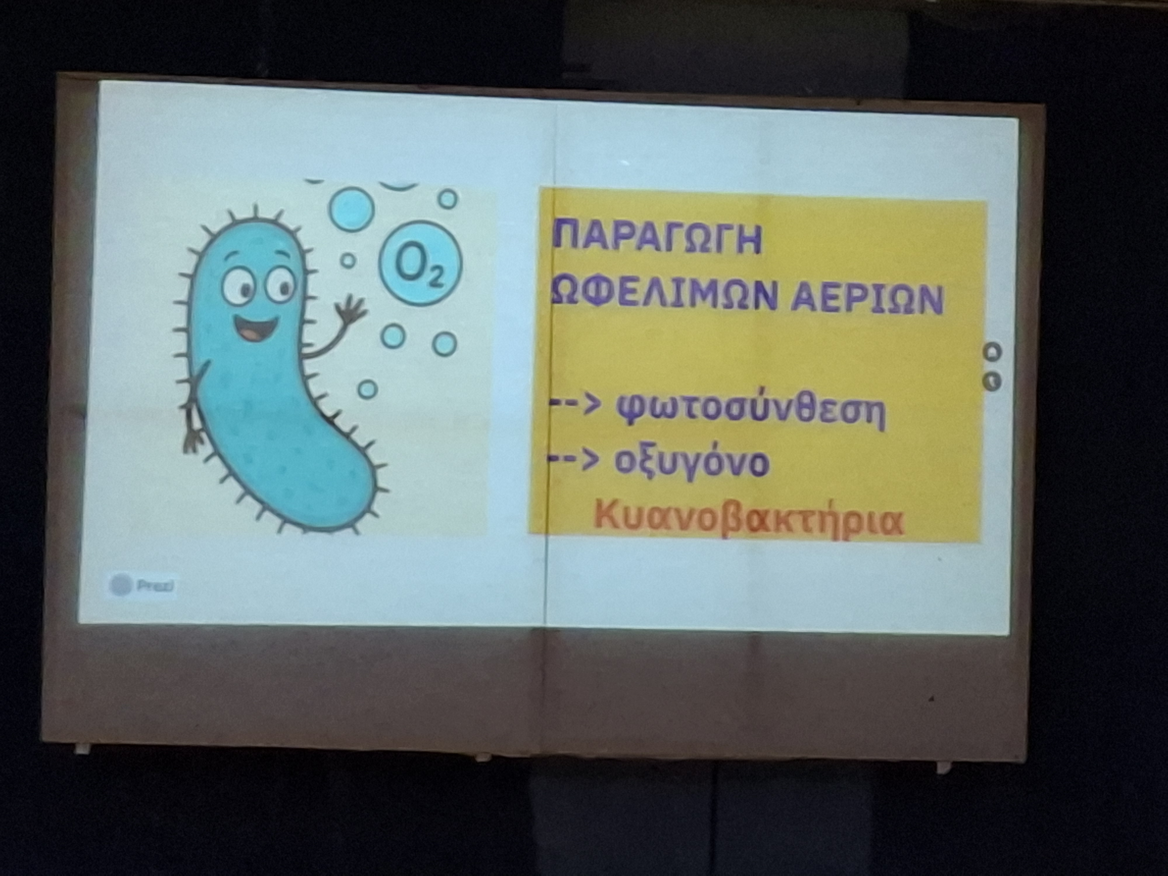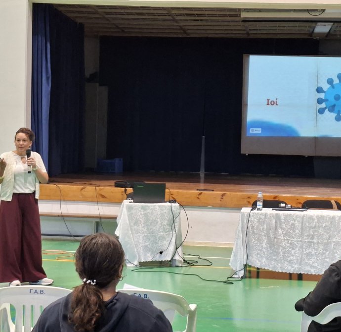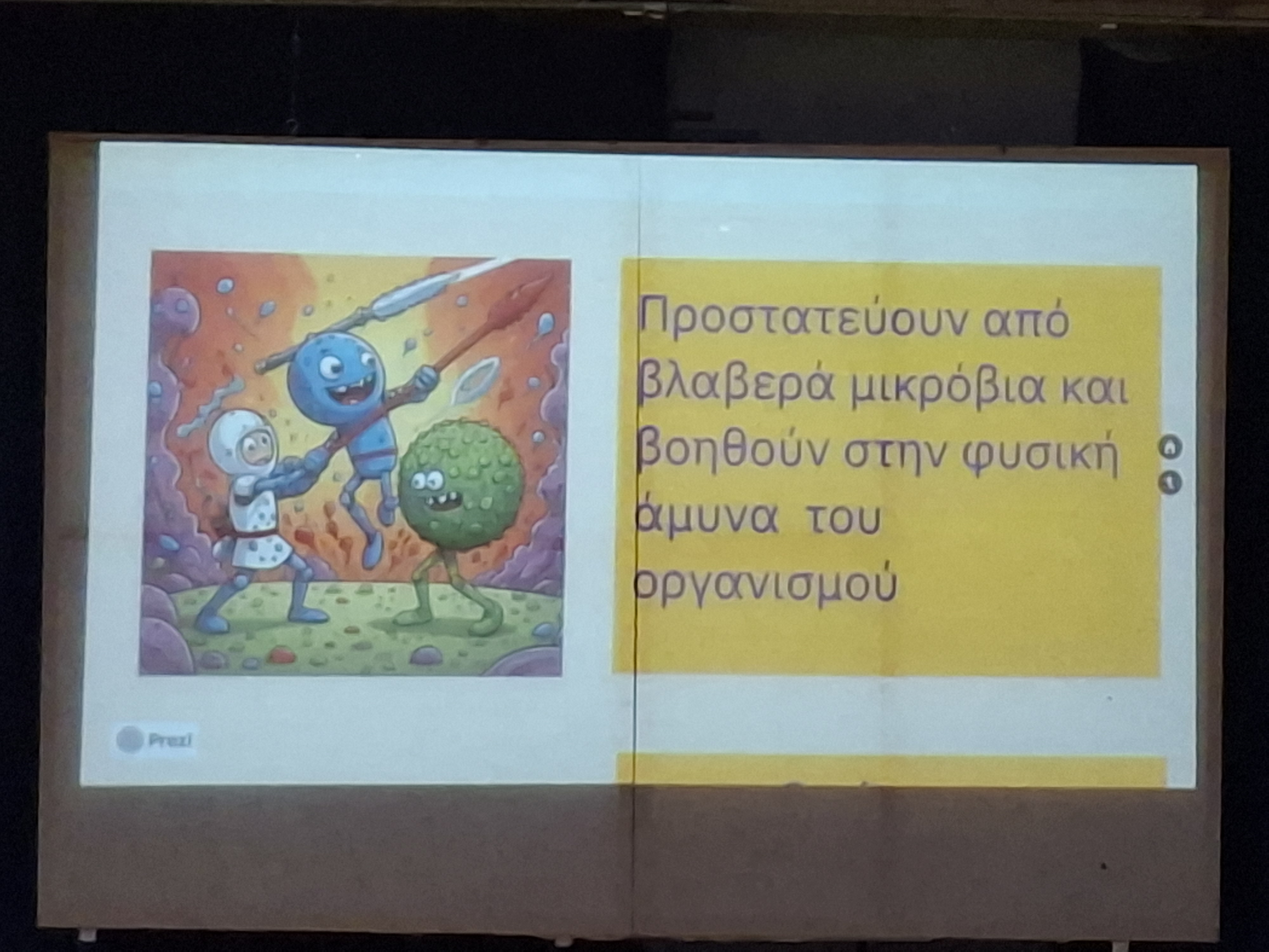 Είχαμε τη χαρά να φιλοξενήσουμε στο σχολείο μας τη Δρ. Ουρανία Μιχαηλίδου, η οποία παρουσίασε σε όλα τα παιδιά της Α’ τάξης Γυμνασίου το πολύ ενδιαφέρον θέμα «Οι αόρατοι φίλοι μας» εστιάζοντας ιδιαίτερα στα χρήσιμα βακτήρια που υπάρχουν γύρω και στον οργανισμό μας π.χ. Σταφυλόκοκκος επιδερμίδις (Staphylococcus epidermidis) ο οποίος προστατεύει το δέρμα, τα Μπιφιδοβακτήρια που βοηθούν το πεπτικό σύστημα, οι Οινόκοκκοι και Σακχαρομύκητες που βοηθούν στις ζυμώσεις και παραγωγή οίνου και μπύρας.