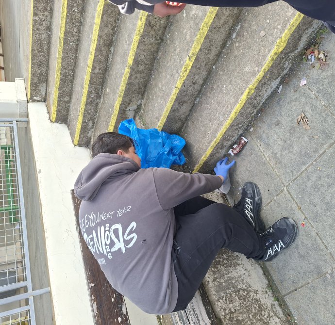 Δράση εθελοντικού καθαρισμού πραγματοποιήθηκε την Παρασκευή, 20 Φεβρουαρίου 2026, από ομάδα μαθητών και την καθηγήτρια κ. Άντρη-Σύλβια Νικολάου, ενισχύοντας την οικολογική συνείδηση του σχολείου μας.