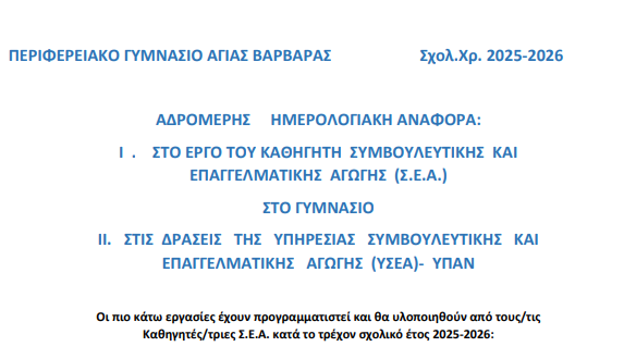 Τμήματα: Α1,Α2,Α4,Α6, Α7, Β1,Β3,Β4,Β5,Β6,Β7,Β8,Γ1,Γ2,Γ3,Γ4,Γ5,Γ6,Γ7.