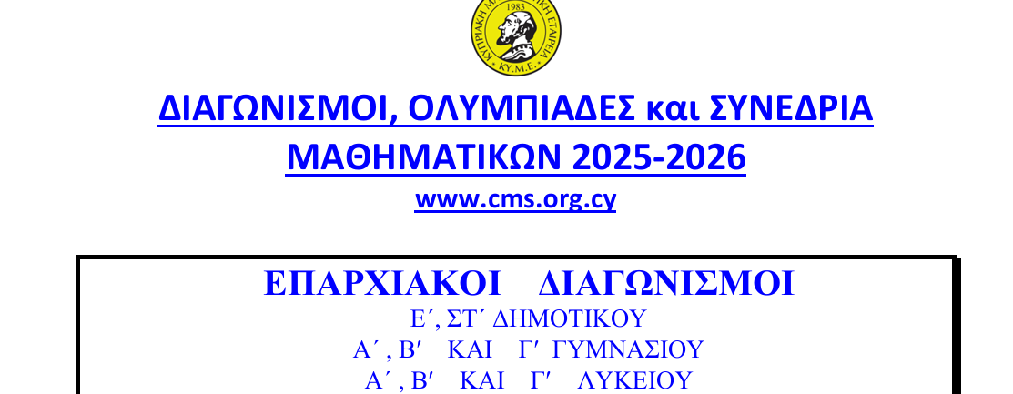 ΔΙΑΓΩΝΙΣΜΟΙ, ΟΛΥΜΠΙΑΔΕΣ και ΣΥΝΕΔΡΙΑ ΜΑΘΗΜΑΤΙΚΩΝ 2025-2026 ΔΙΑΓΩΝΙΣΜΟΙ, ΟΛΥΜΠΙΑΔΕΣ και ΣΥΝΕΔΡΙΑ ΜΑΘΗΜΑΤΙΚΩΝ 2025-2026 Διαβάστε περισσότερα επιλέγοντας εδώ.. ...