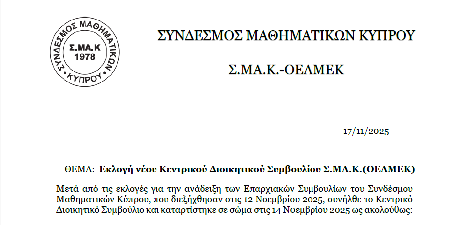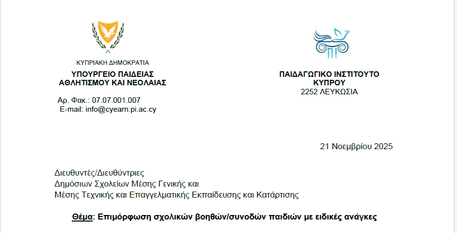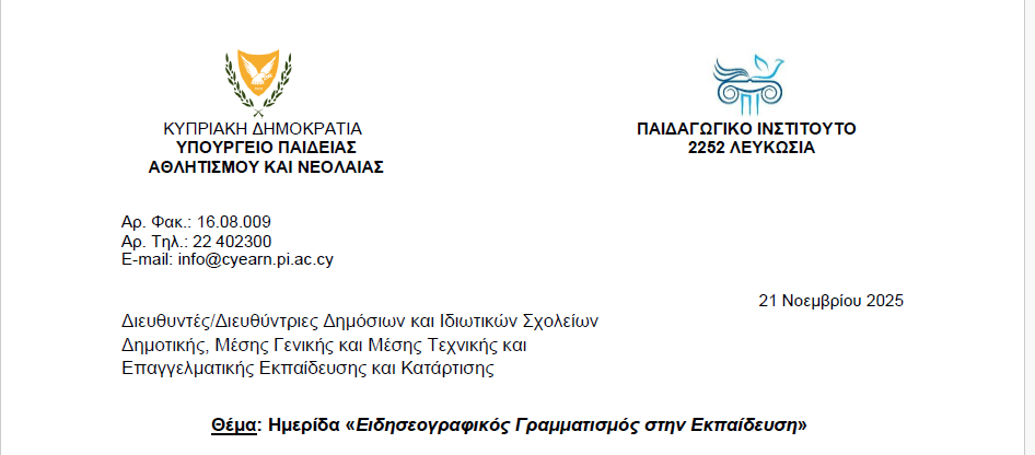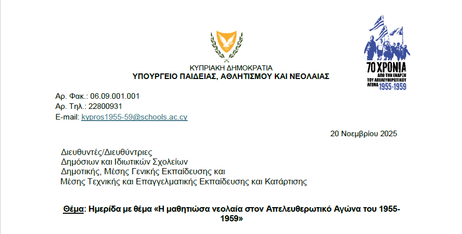 Απο το Υπουργείου Παιδείας, Αθλητισμού και Νεολαίας της Κύπρου