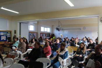 Μετά από μια γενική ενημέρωση σχετικά με το φαινόμενο του εκφοβισμού και τους στόχους του προγράμματος, ο συντονιστής κ. Ανδρέας Τσέντας και η ομάδα των εκπαιδευτών που τον συνόδευαν, παρουσίασαν, μέσα από 6 διδακτικά σενάρια, το υλικό, τα εποπτικά μέσα, τους ρόλους και τις διαδικασίες που θα τεθούν σε εφαρμογή από τους εκπαιδευτικούς του Σχολείου μας σε μια συλλογική δυναμική προσπάθεια για την πρόληψη και την εξάλειψη περιστατικών εκφοβισμού.
